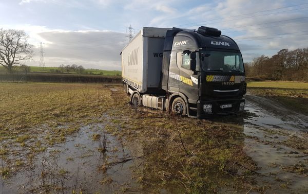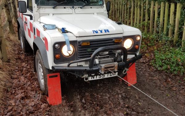Team Landrover on the pull down a bridal way for a sat-nav special